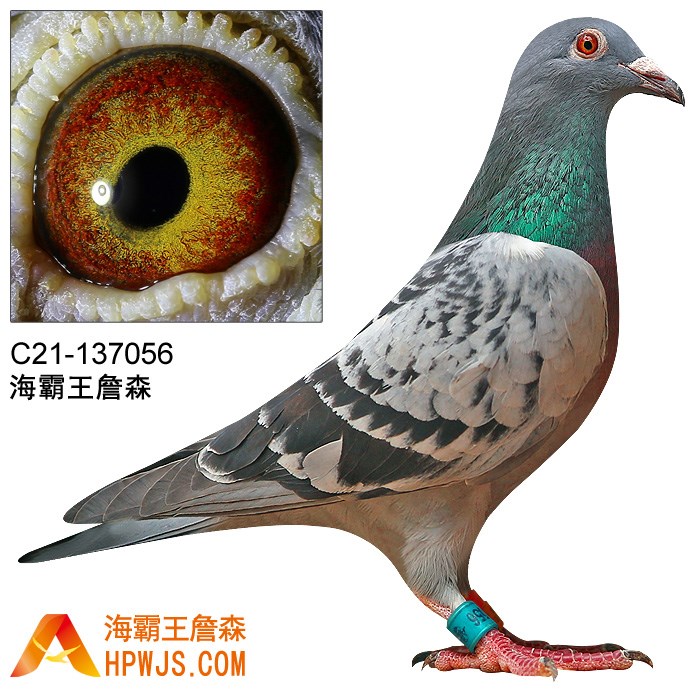 这羽鸽子的父母鸽都是海霸王詹森鸽,C21-137097配C21-137056,在这个群雄争霸的大赛场中,海霸王詹森鸽以其高分速在8243羽中脱颖而出,再次展现了詹森血系的特点!