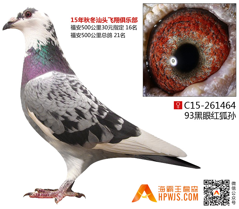| 母亲 C08-191241 | 子代 15年秋冬汕头飞翔俱乐部福安500公里30元指定 16名 15年秋冬汕头飞翔俱乐部福安500公里总鸽 21名 孙代 17年夏汕头飞翔俱乐部300公里莆田30元指定 20名