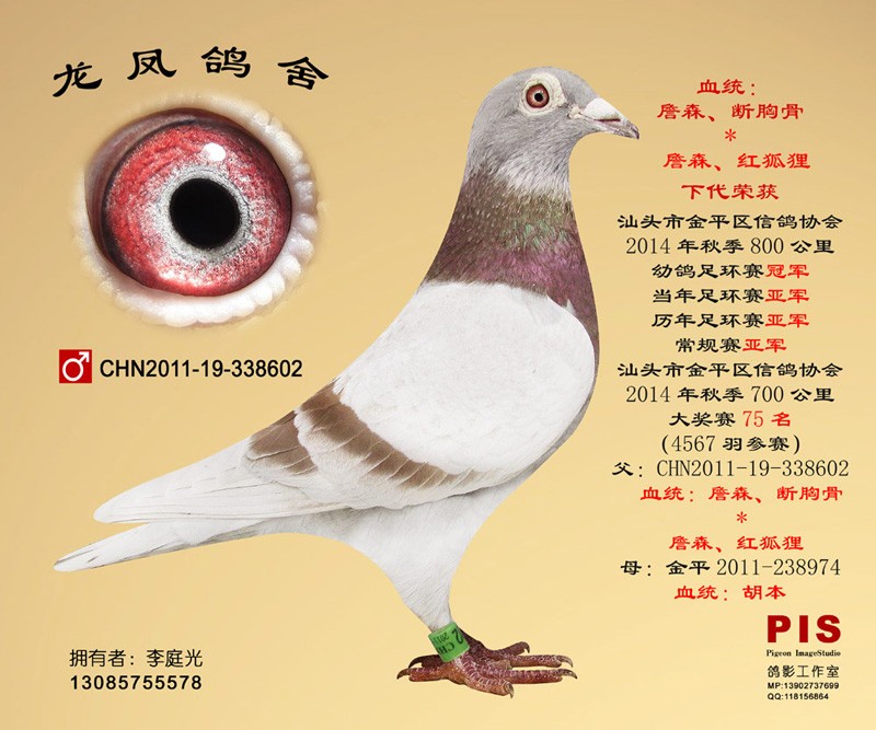 14年秋汕头金平鸽会宁海800公里历年足环赛 867羽 亚军