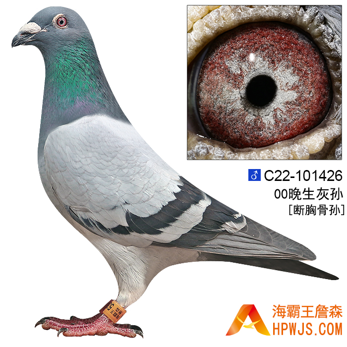 | 祖母 B96-6598515 | 孙代 未参加比赛者 02年汕头升平鸽会秋季福安500公里多关/指定赛 16名 02年汕头市鸽会秋季莆田350公里组赛 106组 7名 03年汕头市鸽会福安500公里组赛 33组 4名 宁波700公里竞翔25名 04年汕头市鸽会秋季福安500公里锦标赛 5288羽 32名 第二届海霸王杯幼鸽赛福安500公里 5000羽 17名 05年辽宁捷威公棚决赛 203名 05年河北金霸公棚决赛512名 四川眉山预赛38名 春超群公棚决赛1282名 05年内蒙古金方舟公棚500公里决赛148名 06年杭州蓝天280公里预赛296名 06年辽宁千山秋季500公里决赛1897名 07年内蒙古天宇通赛鸽公棚358公里预赛56名