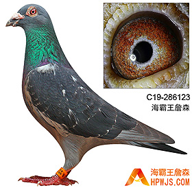 | 祖母 C10-319799 | 孙代 19年春广东欣洋公棚280公里预赛两羽组400元 冠军 19年春广东欣洋公棚280公里预赛 2396羽 25名 19年春广东欣洋公棚180公里热身赛 3124羽 286名 19年春广东欣洋公棚280公里预赛大家乐200元 入赏 19年秋广州浩羽(黄埔)公棚190公里热身赛 4314羽 6名