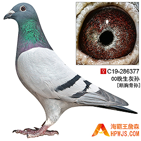 | 母亲 C15-265533 | 孙代 23年春广东汕头大爱公棚420公里决赛 4437羽 576名 平辈子代 第一届海霸王专棚赛第7关6名 10年福建省海峡赛鸽公棚秋季600公里精英赛 136名 11年汕头金平鸽会春季福安500公里常规赛 1031羽 亚军 11年广西北海赛鸽公棚秋季决赛冠军 11年广西北海赛鸽公棚秋季决赛汽车赛冠军 11年广西北海赛鸽公棚秋季决赛8名 17年秋广东广州浩羽(黄埔)公棚第四关500公里决赛 2787羽 45名 18年秋广州浩羽(黄埔)公棚500公里决赛 3281羽 355名 18年秋广东浓翔公棚500公里第三关 4687羽 113名 22年秋江苏美狮王赛鸽中心550公里加战赛 2060羽 30名