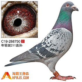 | 曾外祖母 B91-6227405 | 子代 詹森兄弟作,1995年-02年重要种母七年 孙代 03年启用任种,04年第二配对种母 詹森清舍拍卖种鸽 詹森清舍拍卖种鸽 詹森清舍拍卖种鸽 詹森清舍拍卖种鸽 第五届海霸王专棚赛第6关180公里(途中下大雨)7名