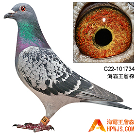 | 曾祖父 T04-828742 | 子代 北京鸿宇第二关冠军 孙代 11年广州浩羽赛鸽公棚决赛500公里 2760羽 41名 11年汕头金平鸽会秋季莆田350公里B指定赛 276羽 21名 15年秋广东汕头许楚强公棚500公里决赛300元指定 冠军 15年秋广东汕头许楚强公棚500公里决赛 1242羽 季军 15年秋广东汕头许楚强公棚500公里决赛团体22名成员 15年秋广州浩羽公棚500公里决赛 1874羽 422名 15年秋广东汕头信源公棚预赛 2967羽 96名 19年春广东汕头大爱公棚170公里热身赛 5821羽 134名 19年春广东汕头大爱公棚300公里预赛 4539羽 208名
