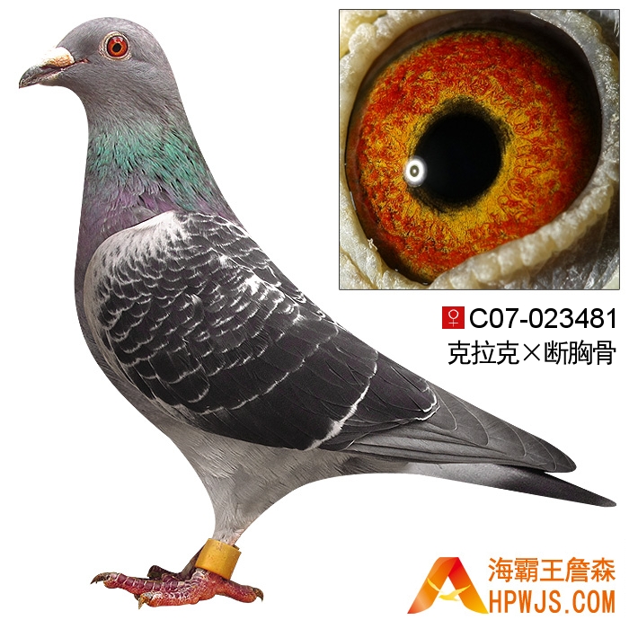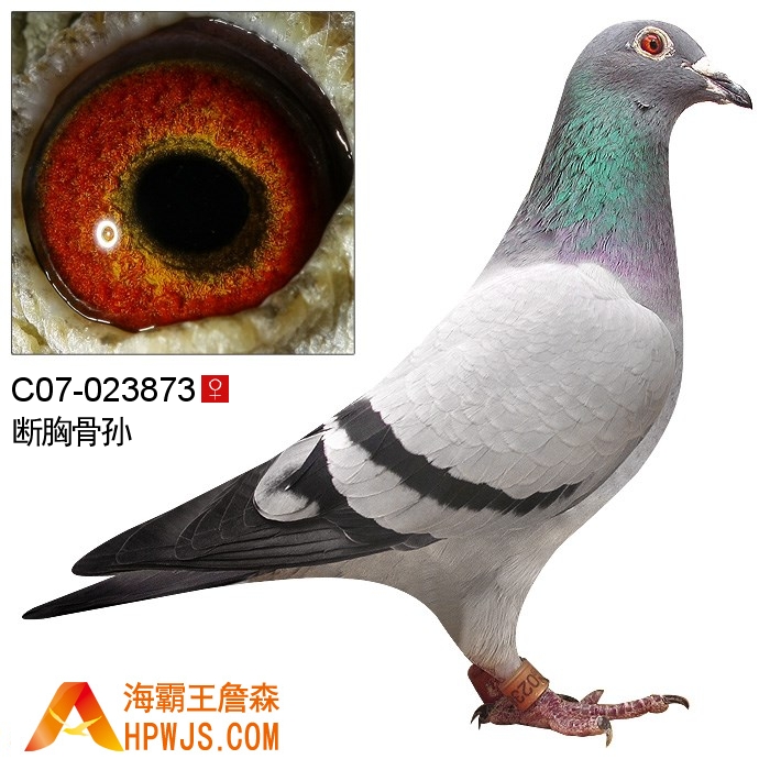 | 外祖母 C07-023481 | 子代 10年汕头奋翔俱乐部冬季大奖赛南丰500公里 1500羽 65名 10年辽宁千山赛鸽俱乐部秋季决赛500公里511名 10山东德州鲁星赛鸽公棚秋季480公里决赛 41名 11年汕头华翔俱乐部秋季会昌240公里B指 214羽 6名 11年汕头华翔俱乐部秋季会昌240公里登记赛 431羽 12名 孙代 15年秋广州浩羽(黄埔)公棚500公里决赛 1850羽 226名 18年秋广东恒通公棚300公里速度赛 5506羽 86名 21年秋广东恒通公棚478公里决赛 4154羽 240名 21年秋广东汕头龙湖公棚485公里决赛小团体 18名 21年秋广东汕头龙湖公棚485公里决赛 3277羽 489名 22年秋江苏美狮王赛鸽中心530公里决赛 3427羽 197名 22年秋江苏美狮王赛鸽中心380公里复赛 3960羽 82名 23年秋广州金羽公棚454公里决赛 942羽 21名