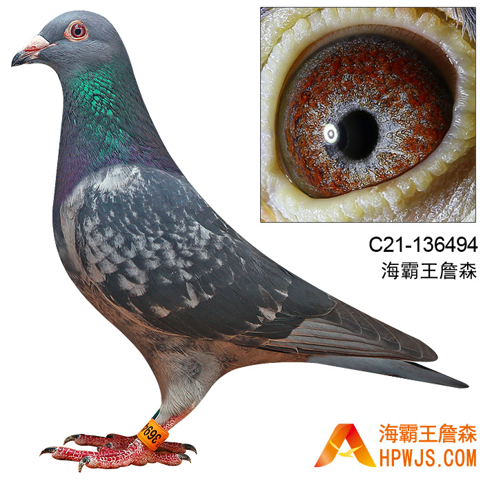 | 曾祖母 B91-6227401 | 子代 詹森兄弟舍内基础第二配对种公要角,1998年-08年任用中 孙代 詹森清舍拍卖种鸽 第五届海霸王专棚赛第1关300公里10名