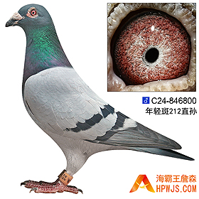 | 曾祖母 B12-6255211 | 本身 詹森兄弟最后一窝原舍幼鸽之一!超级詹森雌鸽“公主”的优质回血 孙代 16年秋汕头市鸽会300公里莆田100元指定 季军 16年秋汕头市鸽会500公里福安100元指定 7名 16年秋汕头市鸽会500公里福安50元指定 7名 16年秋汕头市鸽会300公里莆田50元指定 12名 16年秋汕头市鸽会500公里福安锦标赛 15名 17年秋广东广州金羽赛鸽中心452公里决赛 1039羽 168名 18年秋广州浩羽(黄埔)公棚500公里决赛团体 6名 18年秋广州浩羽(黄埔)公棚500公里决赛 3281羽 211名 20年秋广东恒通公棚380公里预赛 4033羽 147名 22年秋湖北木子会赛鸽公棚350公里预赛 3520羽 54名 23年秋广东揭翔公棚550公里决赛C1四关300 7名 23年秋广东揭翔公棚180公里热身赛 4311羽 91名 23年秋广东揭翔公棚550公里决赛A3奖800名内 600 入赏 23年秋广东揭翔公棚550公里决赛A2奖600名内 500 入赏 23年秋广东揭翔公棚550公里决赛 2949羽 323名 24年秋河北石家庄华祥公棚550公里加站赛A2组 入赏 24年秋河北石家庄华祥公棚550公里加站赛 1298羽 35名