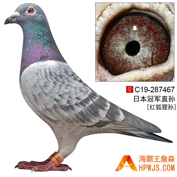 | 曾外祖母 B02-6477306 | 孙代 05年北京惠翔公棚决赛 1324名 06年秋唐山恒信公棚预赛141名 06年秋唐山恒信公棚预赛74名 06年秋唐山恒信公棚决赛178名 06年秋唐山恒信公棚预赛46名 第一届海霸王专棚赛加战赛第1关9名 11年汕头奋翔俱乐部秋季永修700公里指定赛 50羽 10名 11年汕头奋翔俱乐部秋季永修700公里登记赛 129羽 17名 11年汕头奋翔俱乐部秋季永修700公里常规赛 19名 第九届海霸王专棚赛300公里1名 17年秋湖北金楚信鸽交流中心502公里决赛 3945羽 267名